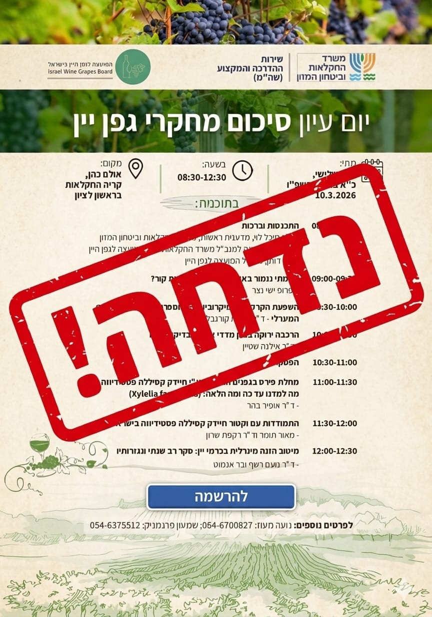 לצערנו נדחה בגלל המצב הביטחוני… שמרו על עצמכם בבית ובכרמים 🙏